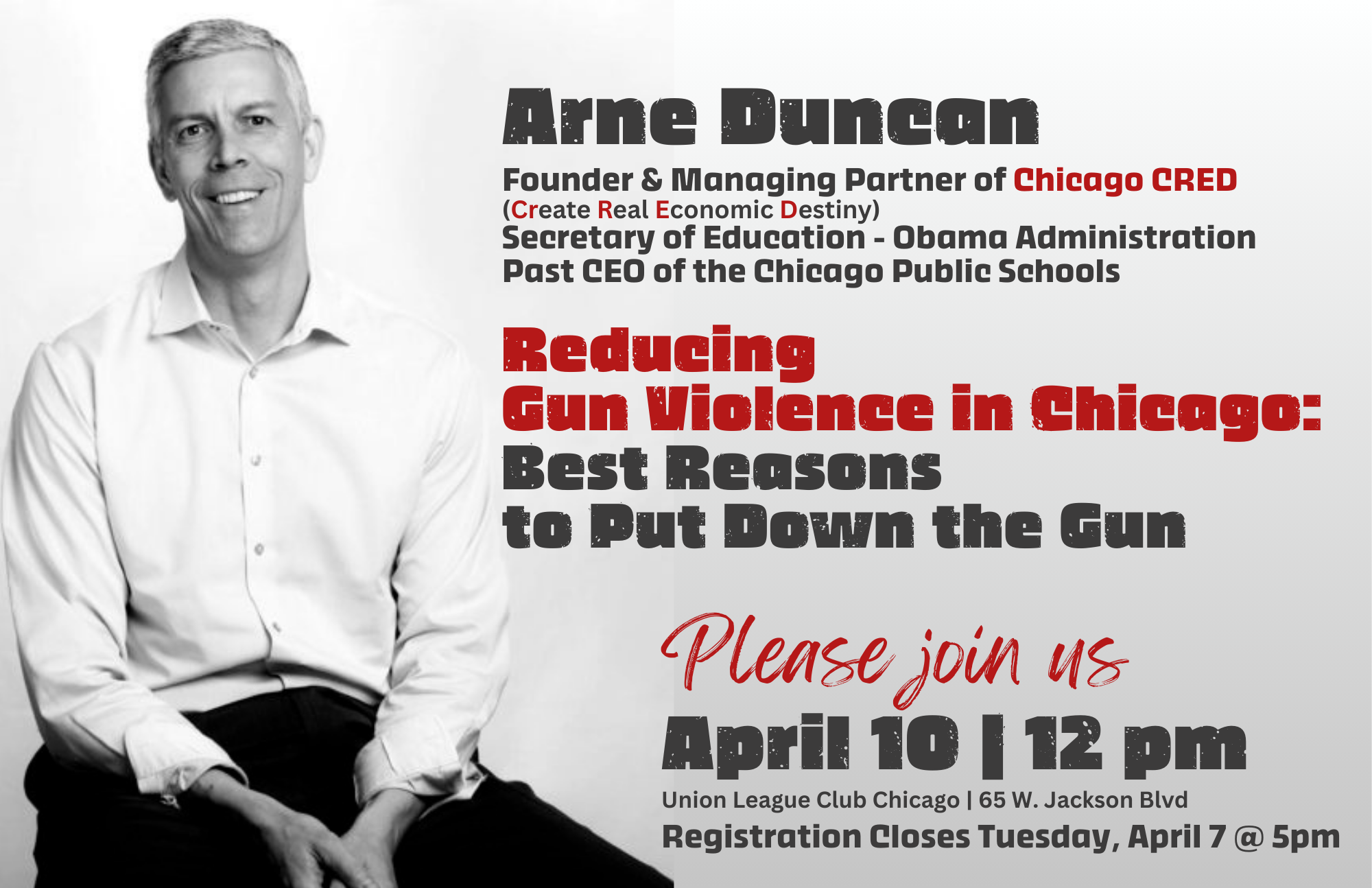CELEBRATING OUR 40th SEASON! Please Join us on APRIL 10TH, 2026 as Guest Speaker Arne Duncan Leads a Panel Discussion on Reducing Gun Violence in Chicago